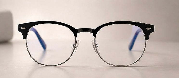 Yarım çerçeve tasarımı ve modern hatlarıyla Noir Frame, sade ama güçlü bir stil sunar. Mavi ışık filtreli lensleri sayesinde uzun ekran kullanımında gözlerinizi korur.
